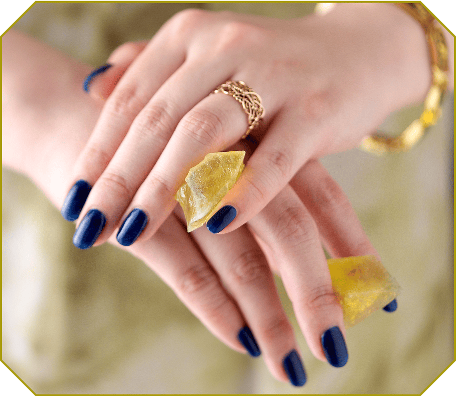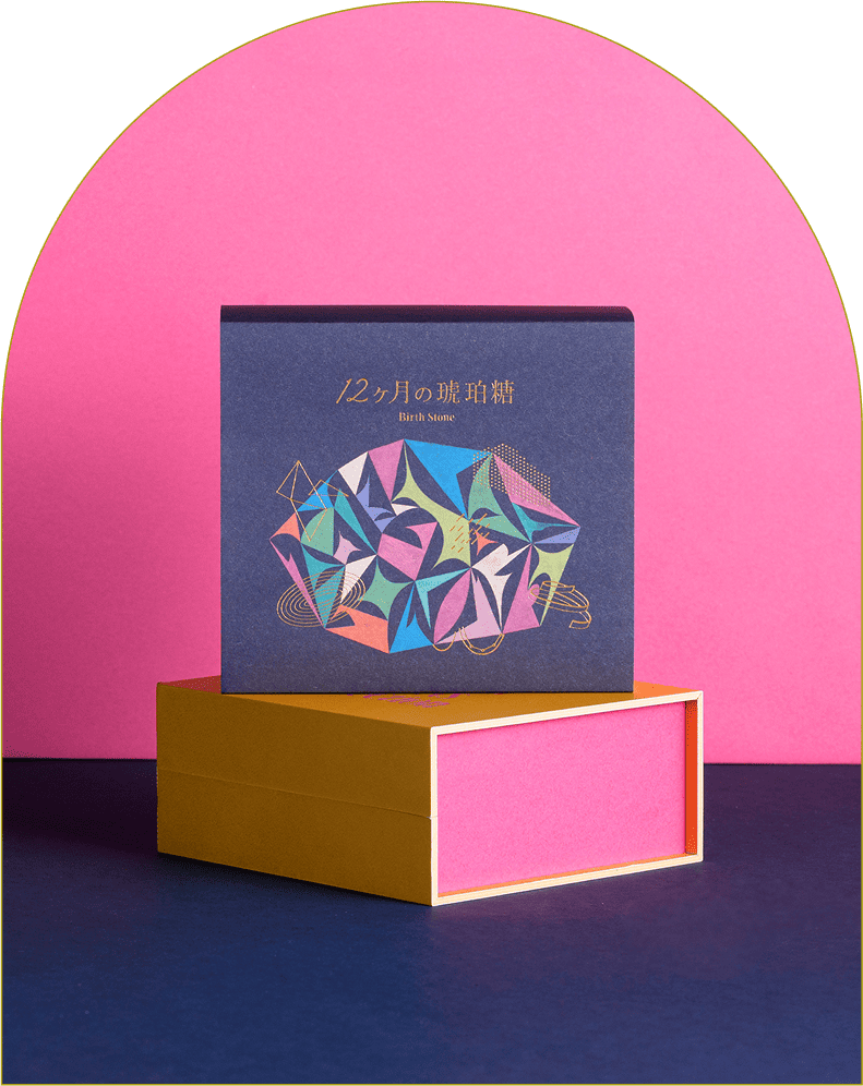 ラピスラズリをイメージした深い青と黄金色で、気高い美しさや唯一無二の存在感を表現しました。