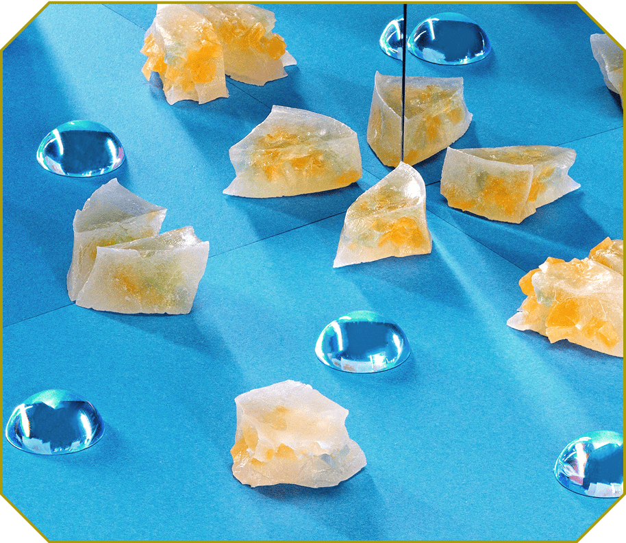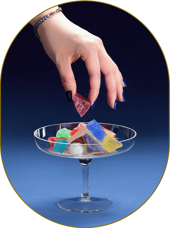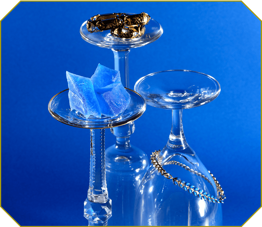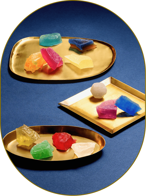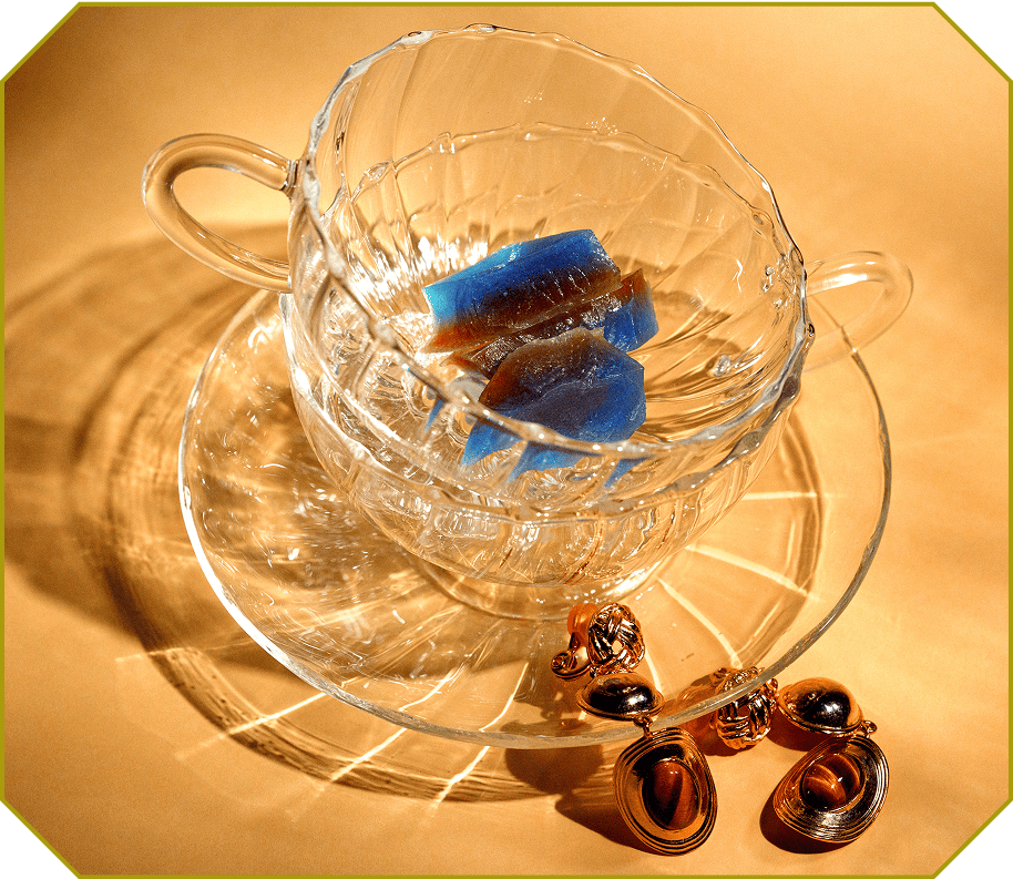天然色素のスピルリナを使ったサファイアのような深い青色は、揺るぎない一途な心を表現しています。