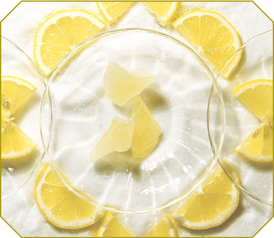 爽やかな酸味と香り、そこに加わるほろ苦さがくせになるレモンフレーバー。グラニュー糖をまぶして食感に変化を出しました。