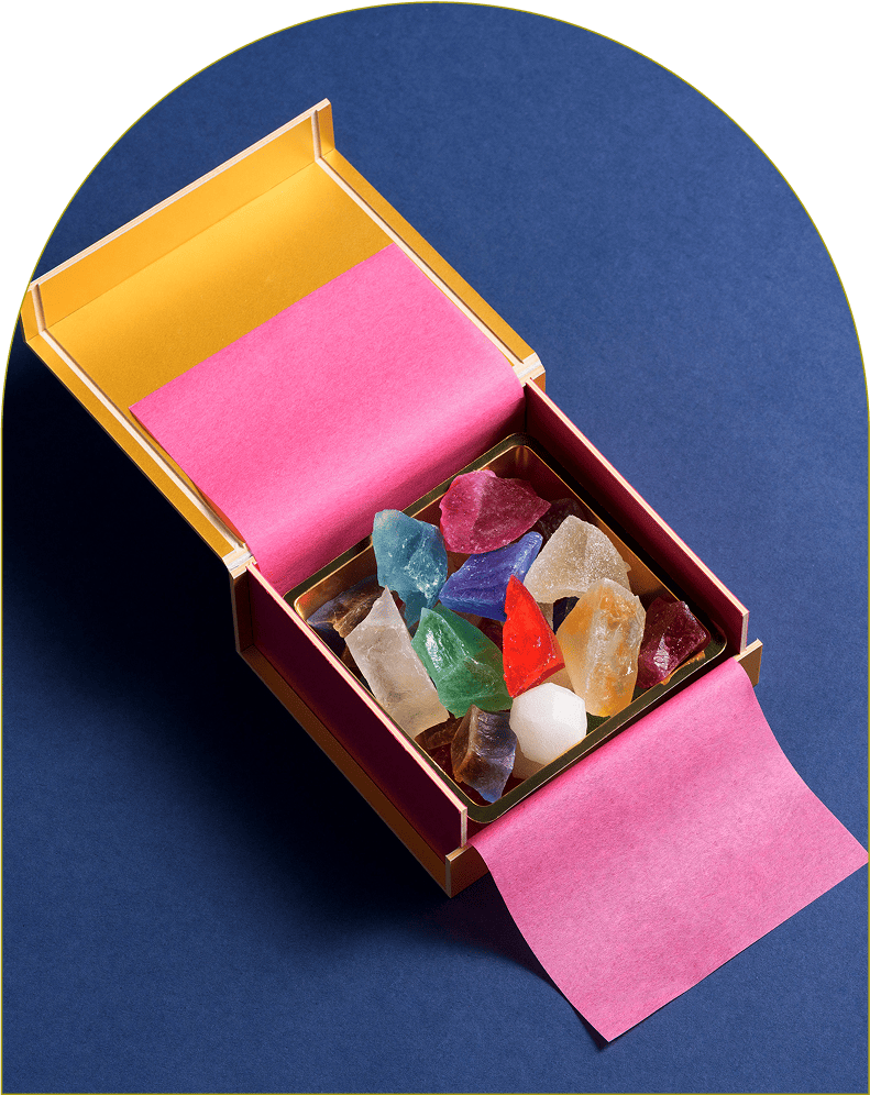「虹の宝石」とも呼ばれるオパールをイメージし、ユーモアや多才さ、自由な遊び心を表現しました。